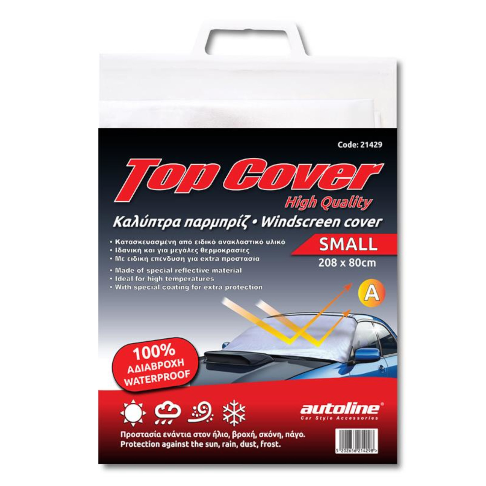 To Κάλυπτρο παρμπρίζ αυτοκινήτου της Autoline Topcover προσαρμόζεται εύκολα στο παρμπρίζ χωρίς να αφήνει κενές επιφάνειες. Προστατεύει το τζάμι όλες τις εποχές του χρόνου ενάντια σε ήλιο, βροχή σκόνη και πάγο. Είναι κατασκευασμένο από ειδικό ανακλαστικό υλικό ιδανικό για αντοχή σε μεγάλες θερμοκρασίες και έχει ειδική επένδυση για extra προστασία. Είναι 100% αδιάβροχο.