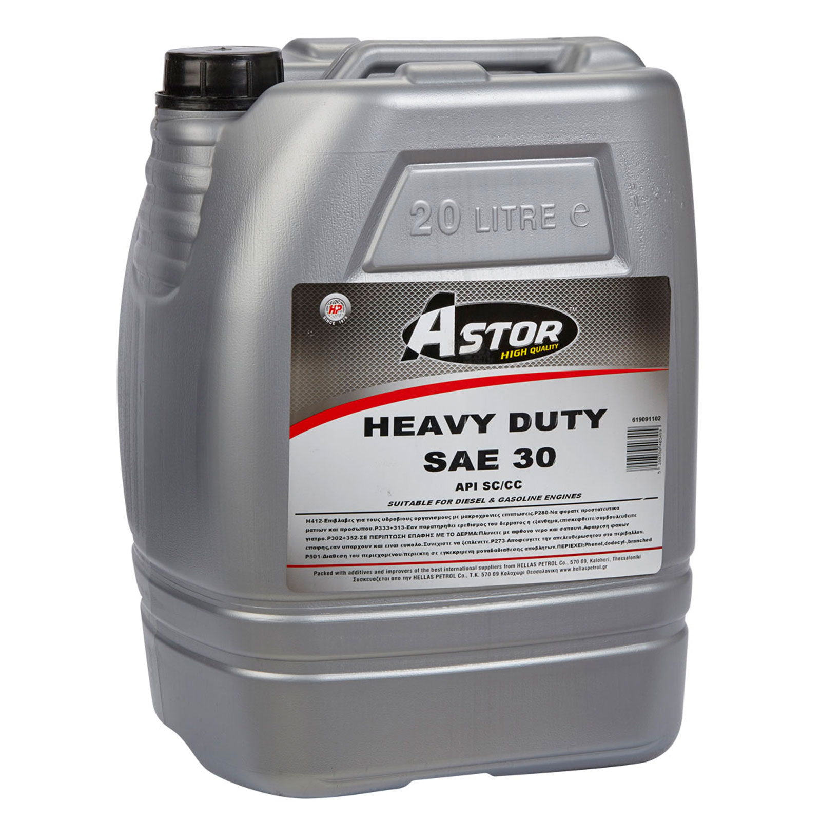 Το Astor Heavy Duty SAE 30 είναι αρίστης ποιότητας μονότυπο ορυκτέλαιο. Κατάλληλο για βενζινοκινητήρες και πετρελαιοκινητήρες, όπου δεν απαιτούνται αυστηρότερες προδιαγραφές. Προστατεύει τα μεταλλικά μέρη από τη διάβρωση,τη σκουριά και τη φθορά. Καλύπτει τις προδιαγραφές