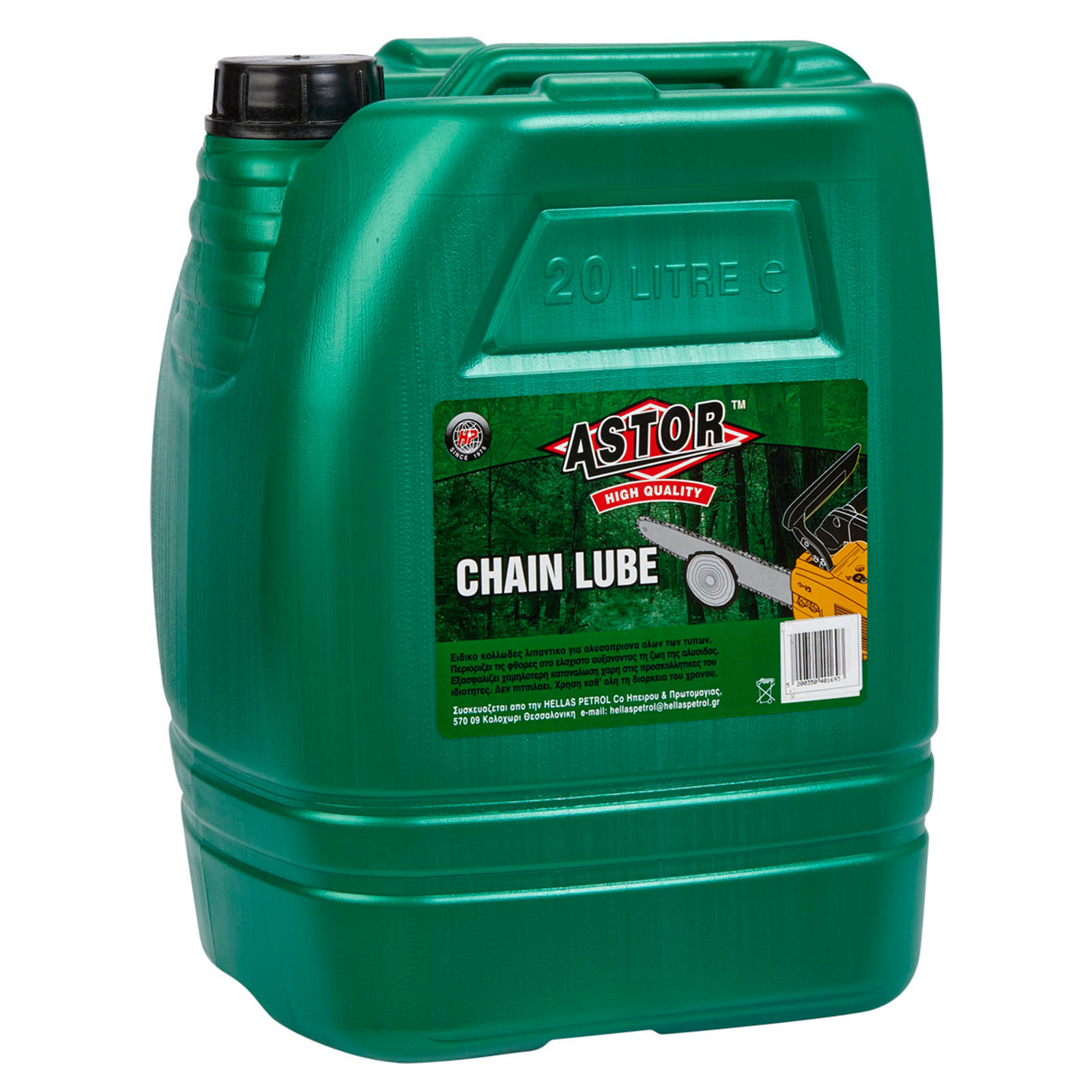 Το Astor Chain Lube είναι ειδικό κολλώδες λιπαντικό για αλυσοπρίονα όλων των τύπων. Περιορίζει τις φθορές στ ο ελάχιστο αυξάνοντας τη ζωή της αλυσίδας.Εξασφαλίζει χαμηλότερη κατανάλωση χάρη στις προσκολλητικές του ιδιότητες. Δεν πιτσιλάει. Περιέχει πρωτογενή ορυκτέλαιο. Χρησιμοποιείται καθ’όλη τη διάρκεια του χρόνου.