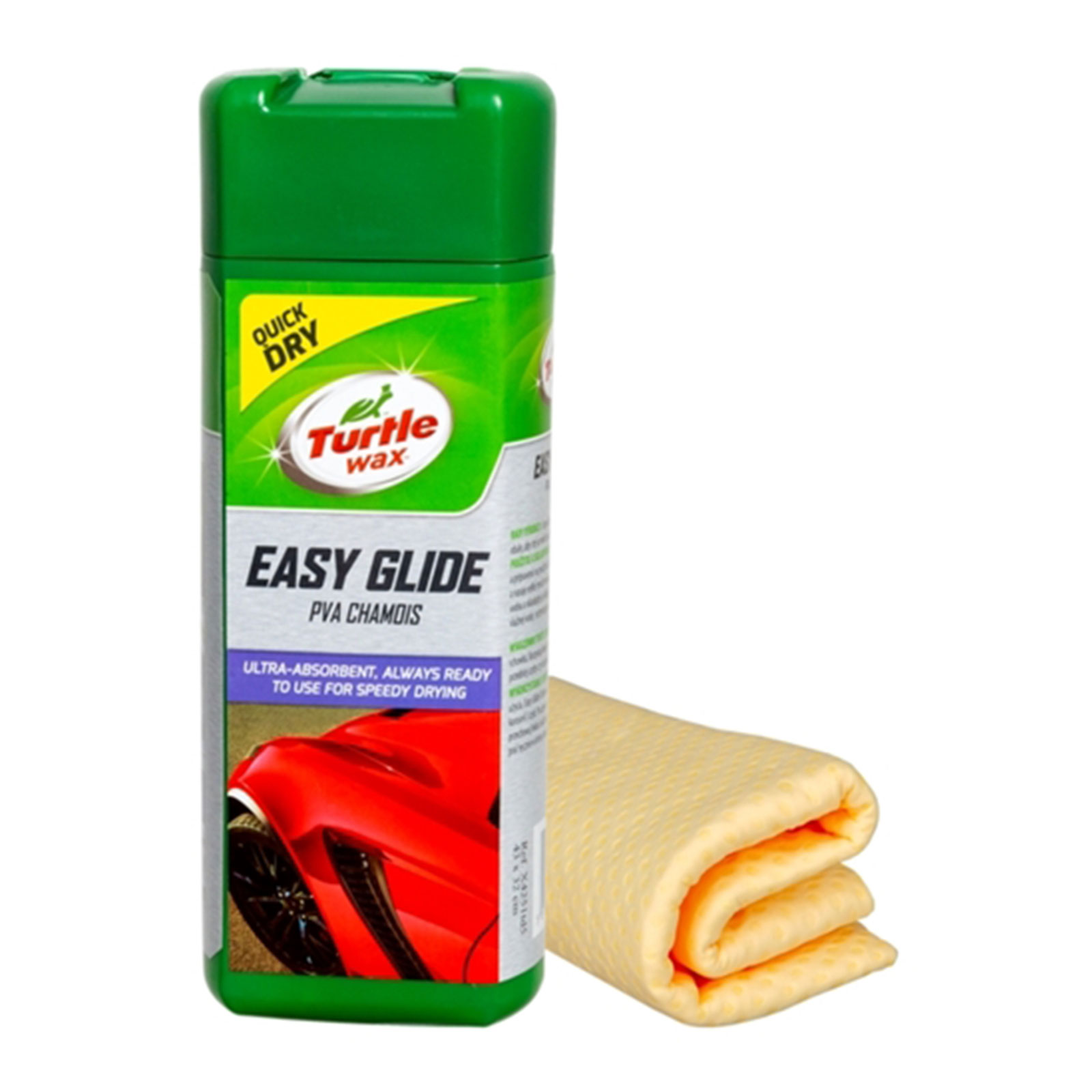 Το Συνθετικό Δάρμα Στεγνώματος της Turtle Wax είναι κατασκευασμένο από συνθετικό υλικό PVA το οποίο διατηρεί 10 φορές το βάρος του σε νερό, ώστε να μπορείτε να στεγνώσετε το αυτοκίνητό σας απίστευτα γρήγορα και εύκολα χωρίς γρατζουνιές.Προλαμβάνει τους λεκέδες νερού, ακόμη και σε γυάλινα και γυαλιστερά μεταλλικά σημεία.Λόγω της θήκης αποθήκευσης, παραμένει μαλακό και εύκαμπτο και έτοιμο για χρήση ανά πάσα στιγμή.