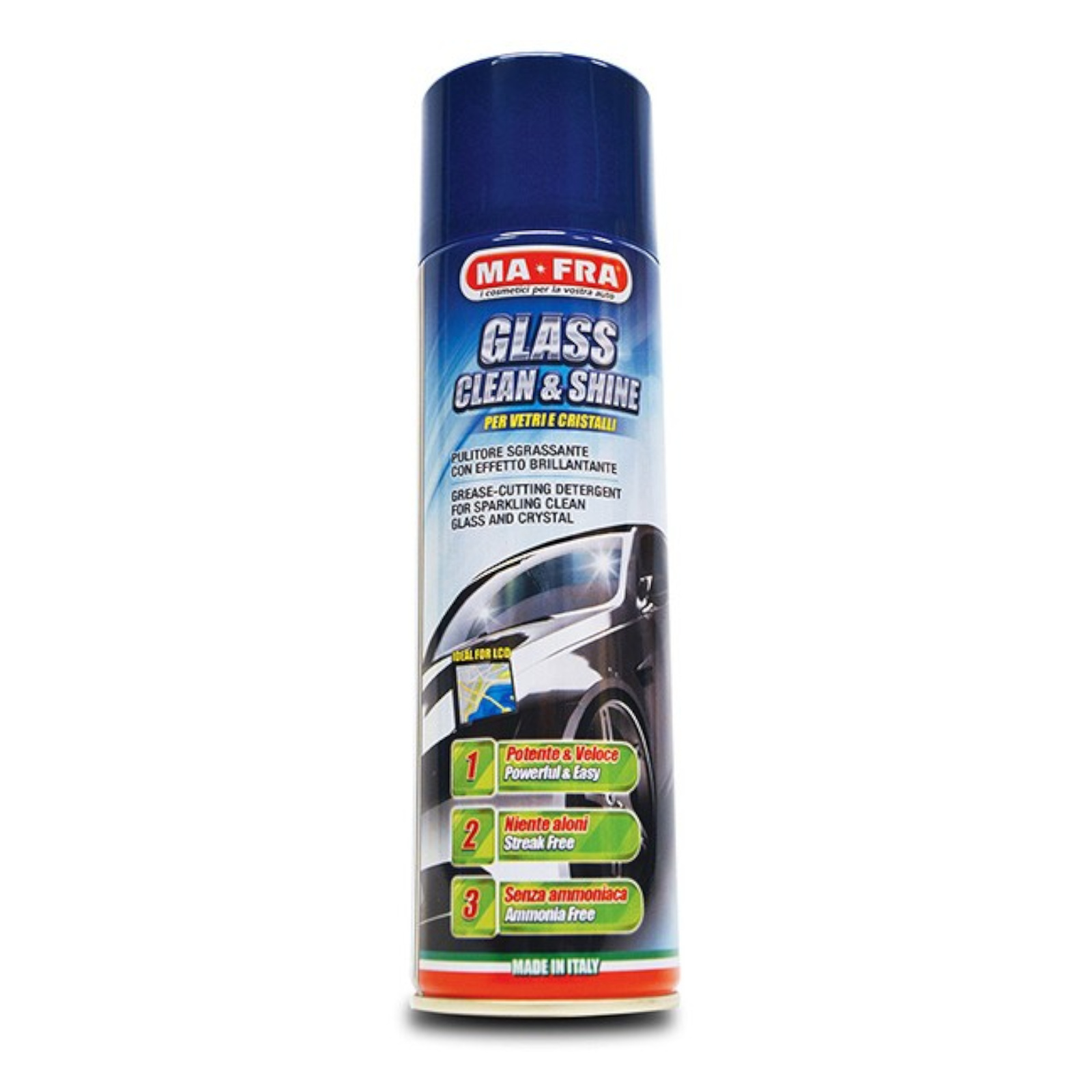 Το Glass Clean & Shine είναι ενεργός αφρός για τον καθαρισμό τζαμιών. Δεν περιέχει αμμωνία, αφαιρεί αποτελεσματικά κάπνες, νικοτίνη, λίπη και κεριά. Συνιστάται και για τον καθαρισμό τζαμιών με μεμβράνες. Εύκολη και γρήγορη εφαρμογή. Δεν θαμπώνει ακόμα και όταν εφαρμόζεται υπό τον ήλιο. Έχει ευχάριστο άρωμα.