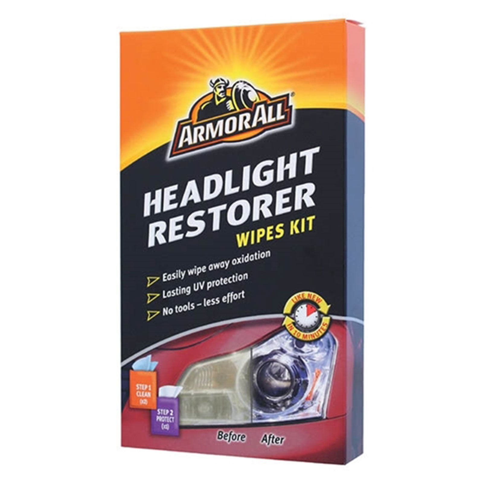 Το Kit Επαννόρθωσης Φαναριών της Armor All καθαρίζει τα περισσότερα φανάρια αυτοκινήτων τα οποία είναι κατασκευασμένα από υλικά με βάση το πολυανθρακικό. Αυτό το υλικό, όμως, οξειδώνεται και θαμπώνει με την πάροδο του χρόνου με αποτέλεσμα να θαμπώνουν τα φανάρια και να είναι επικίνδυνη η οδήγηση. Με το Armor All Kit Επανόρθωσης Φαναριών, τα φανάρια επανέρχονται στην αρχική τους κατάσταση με απλό και γρήγορο τρόπο!